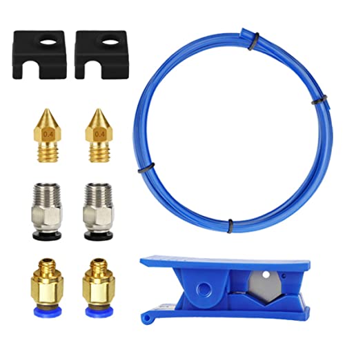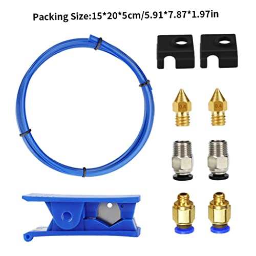 U ontvangt 1 x PTFE-buis, 1 x Ptfe Slicer, 4 x Pneumatische fittingen, 2 x Mk8 Hot-End Socks en 2 X, Nozzles
