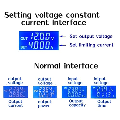 Voedingsregelaar Functies LCD -weergaven voor ingang/uitgangsspanning, uitgangsstroom/uitgangsvermogen/uitgangscapaciteit/uitgangstijd