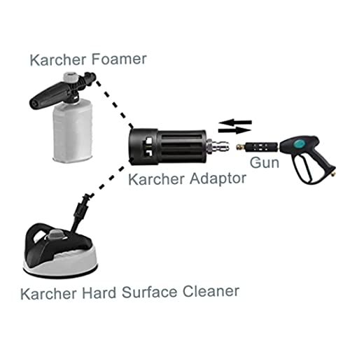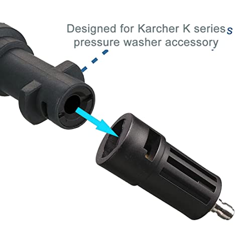 Drukrasadapter verbindt zich met stroomuitgavenmondstuktips of schuimkanon uitgerust met 1/4 inch stekker. En het andere uiteinde wordt ingevoegd om de connector met de klok mee te bewijzen en te draaien. Vervangingsonderdelen van elektrische druk wassen zijn gemaakt van milieuvriendelijk en duurzaam engineering plastic.
