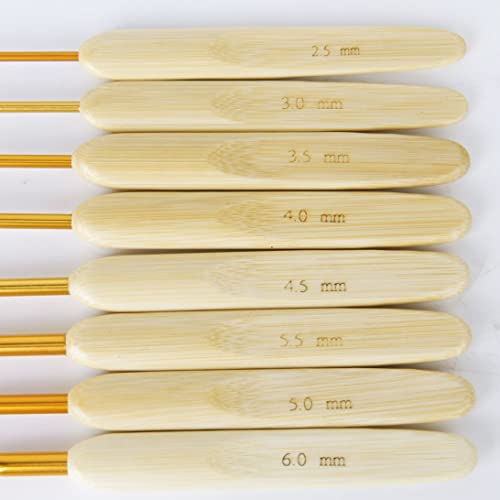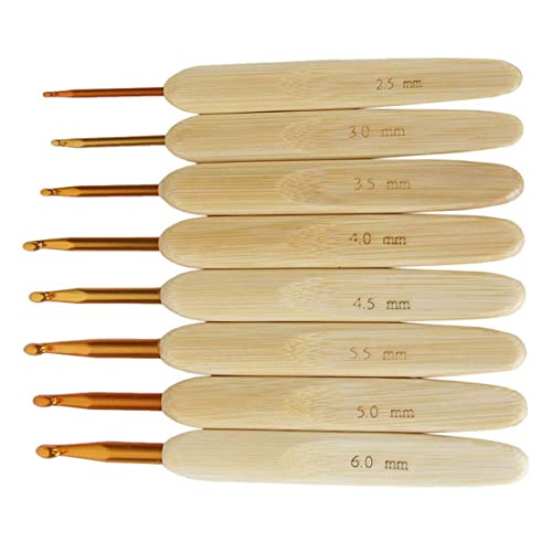 Specification: Haakhaken set premium bamboe handgreep aluminiumoxide haakhaken naalden voor ergonomische breiencraft 2,5 mm-6,0 mm 8 stks thuisbenodigdheden