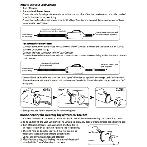 U krijgt: Pool Leaf Canister Set wordt geleverd met 1 zwembadbladbus, een 24 cm slang, 1 filtermand, 1 slangconnectoradapter en 1 rubberen connector om u te helpen uw poolreinigingswerk perfect te voltooien