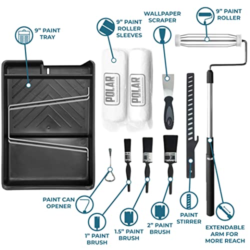Polar Home Paint Kit met Uitschuifbare Lange Roller, Paint Tray, Tin Opener, Stirrer, 3X Paint Brushes en 2X Roller Sleeves voor het schilderen en decoreren van vloeren, muren en plafond