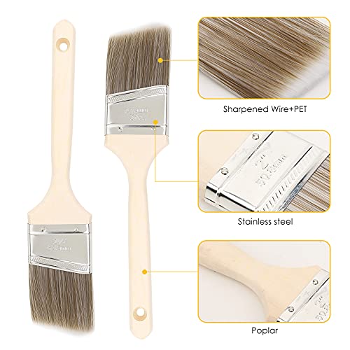 Professionele lazuurborstelset: De wandborstel set bestaat uit een 63mm hoekborstel, een 50mm platte borstel, een 50mm hoekborstel, een 3,8mm hoekborstel en een 20mm platte borstel. De hoekkwasten zijn uitstekend geschikt voor het schilderen van wandranden, terwijl platte raamkozijnen uitstekend geschikt zijn om te vormen. Een set voldoet aan al je behoeften.