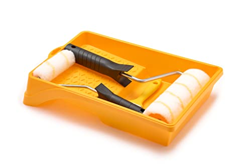 Diamantschilder set 4 delig | 1x platte borstel 50 mm, 1x verfroller 10 mm met handvat, 1x verfroller 180 mm met handvat, 1x verfbak 26 cm x 33 cm