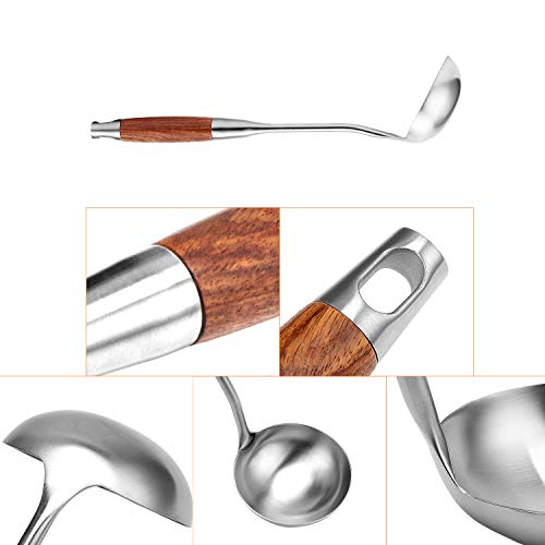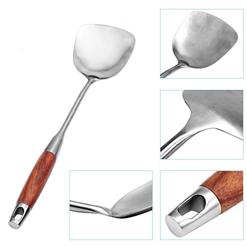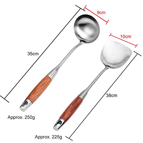 Specification: Coolty 2-delige set keukengerei, 304 roestvrijstalen wokspatel en soeplepel, set met lang hittebestendig houten handvat