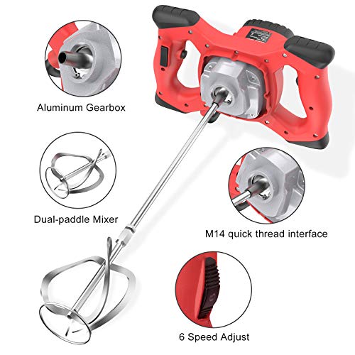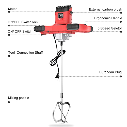 Specification: 2100 W menger, M14 IMAYCC mortelmixer, elektrische betonmixer, mortelmixer, ergonomisch met 6 versnellingen toerentalregeling, roerder, elektrisch voor bitumen cementmodder