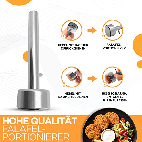 Specification: Falafel Portioneerder, voor perfecte bereiding van lekkere Falafel-balletjes, hygiënisch koken met Falafel-vormer, eenvoudige reiniging, geschikt voor de vaatwasser, Falafel Maker
