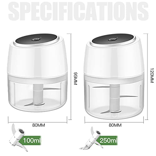 Specification: shisipq USB 100/250 ml elektrische mixer voor knoflook kleine crusher vlees draagbare keuken gadget stamper hakmixer voor uien salades groenten wit huishouden snijden molen