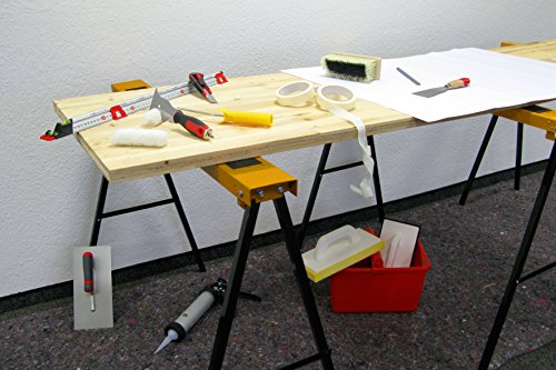 Specification: Meister Metalen bok 100 kg – inklapbaar – met draaggreep – met anti-slip pad/onderstelbok van metaal/opvouwbare klapbank met rubberen pad/werkbank met 780 mm werkhoogte / 5258130