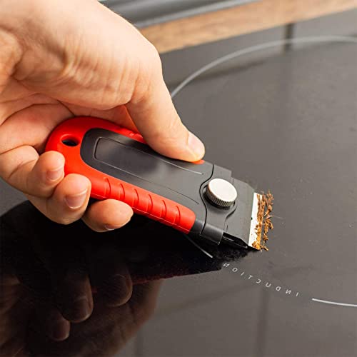Aatpuss Glasschraper, Inductie Schraper, Schraper met Roestvrijstalen Mes, voor Veelzijdige Reiniging Zoals Stickers, Raamverf, Behang Etc, Alle Soorten Vuil(Rood en Zwart)
