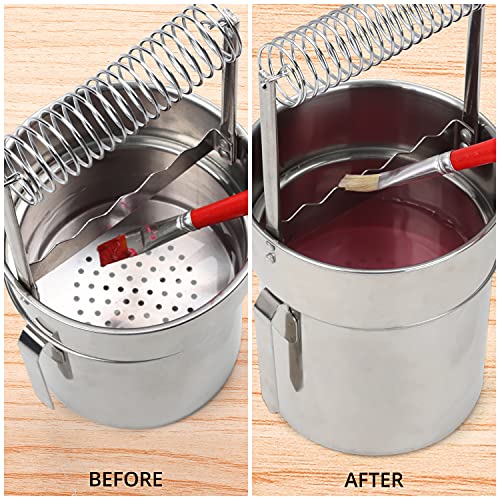 Kurtzy Roestvrij Stalen Verfkwasten Schoonmaak Reiniger – Lek Vrij Draagbare Dubbel Gelaagde Artiesten Kwasten Reiniger met Wastank, Verwijderbaar Filter en Veer Houder – Voor Olie Kunst Schilderen